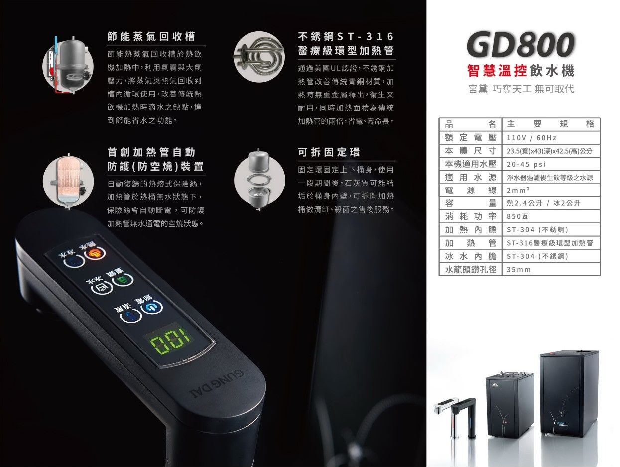 宮黛 GUNG DAI GD800 觸控式 冰溫熱三溫 飲水機 廚下設備 廚下飲水機 (附宮黛三道濾芯)